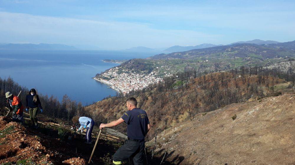 Εκείνη την όμορφη ημέρα, την ηλιόλουστη, οι μαθητές θα τη θυμούνται ως μια πολύ καλή ημέρα μαθήματος. Βρέθηκαν στη φύση, στον περιβάλλοντα χώρο του τόπου τους που είχε πάνω στο σώμα του όλα τα σημάδια της καταστροφής από τις πυρκαγιές, αλλά είχε και μια ανοικτή αγκαλιά για να δεχθεί τα φυτά που θα του δώσουν νέο χρώμα και άρωμα. Έμαθαν από τους ειδικούς για τις συνθήκες κάτω από τις οποίες επιλέγεται η αναδάσωση και για το πώς αυτή γίνεται, ποια φυτά επιλέχθηκαν και γιατί, κι έσκυψαν πάνω από τους ανοιγμένους λάκκους για να φυτέψουν τα νέα φυτά. Κι έμοιαζε αυτό το σκύψιμο με προσκύνημα στη γη τους και σαν παράκληση η γη να δεχθεί και να μεγαλώσει τον κάθε σπόρο, το κάθε φυτό, για να πρασινίσει ξανά η πλαγιά που μαζί με το μπλε της θάλασσας θα δώσει ξανά τον ξεχωριστό τόνο στον πίνακα της πόλης τους. Τα γέλια, και οι φωτογραφικές λήψεις έδιναν κι έπαιρναν και ήταν όλο αυτό μια νότα χαράς και αισιοδοξίας που την έχει τόσο ανάγκη ο τόπος και οι άνθρωποι.
