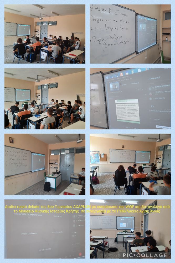 Στις 16-05-2022 πραγματοποιήθηκε διαδικτυακή επιστημονική συζήτηση στην οποία συμμετείχαν οι περιβαλλοντικές ομάδες του 8ου Γυμνασίου ΑΧΑΡΝΩΝ και του Γυμνασίου/ΛΤ Αγίας Άννας Εύβοιας.