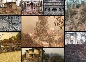 Η πυρκαγιά αυτή διαπέρασε όλο το χωριό, εκείνο το μοιραίο βράδυ, καίγοντας 37 αποθήκες, 22 σπίτια και την κεντρική εκκλησία του χωριού μας, τους Άγιους Ταξιάρχες, την «καλλονή» του χωριού μας, όπως τη χαρακτηρίζει ο συγγραφέας και ερευνητής Αλέξανδρος Καλέμης και τον… ΠΑΡΑΔΕΙΣΟ ΜΑΣ!